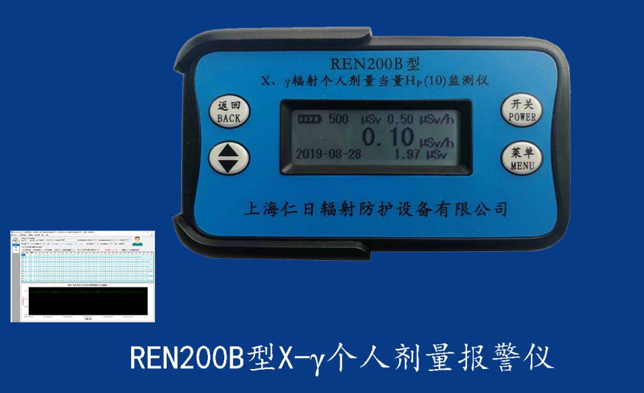 REN200A型X、γ輻射個(gè)人劑量當(dāng)量HP(10)監(jiān)測(cè)儀(簡(jiǎn)稱(chēng):個(gè)人劑量報(bào)警儀)內(nèi)置高靈敏度蓋格計(jì)數(shù)管為探測(cè)器,主要用來(lái)監(jiān)測(cè)各種放射性工作場(chǎng)所的X、γ以及硬β射線的輻射,具有響應(yīng)快,測(cè)量范圍寬的特點(diǎn)。能顯示工作場(chǎng)所的劑量當(dāng)量率和累積劑量,更換電池時(shí),日期及累積數(shù)據(jù)能永久保存。可選配RenRiPersonal個(gè)人劑量管理軟件,該軟件可存儲(chǔ)多個(gè)人的歷史數(shù)據(jù),能記錄日累積、月累積、年累積、輻照時(shí)長(zhǎng)、計(jì)算平均劑量率、扣除或不扣除本底輻射,且以文字和圖譜的方式展現(xiàn)數(shù)據(jù)。廣泛應(yīng)用于核電站、加速器、鋼鐵、化工、同位素應(yīng)用、工業(yè)X、γ無(wú)損探傷、放射醫(yī)療、鈷源治療、γ輻照、放射性實(shí)驗(yàn)室、核設(shè)施周?chē)h(huán)境監(jiān)測(cè)等領(lǐng)域中的工作人員進(jìn)行個(gè)人安全
